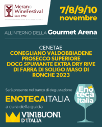 Un momento di grande prestigio: siamo presenti al Merano Wine Festival. Trovate il nostro Prosecco Superiore D.O.C.G. Extra Dry Rive di Farra di Soligo presso l'esclusivo banco di degustazione di Enoteca Italia, curato e selezionato